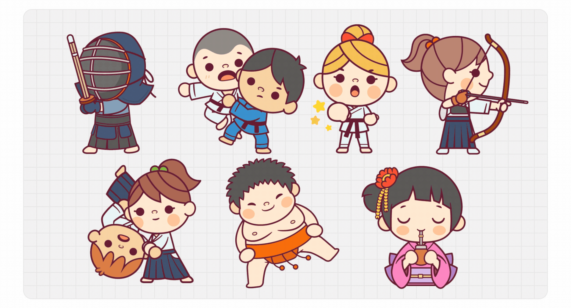Diseñamos un set de stickers animados para el Centro Cultural de la Embajada del Japón en la Argentina, combinando elementos de la cultura japonesa y argentina con una estética kawaii.