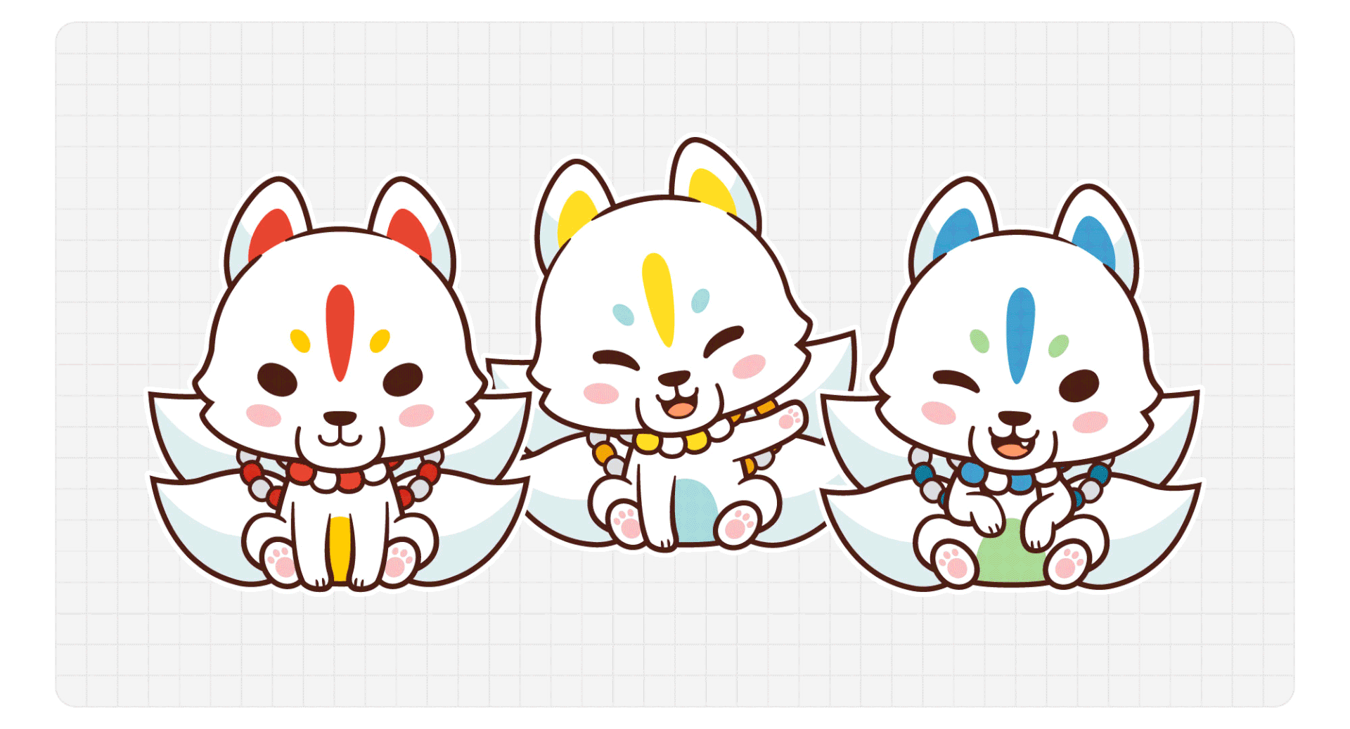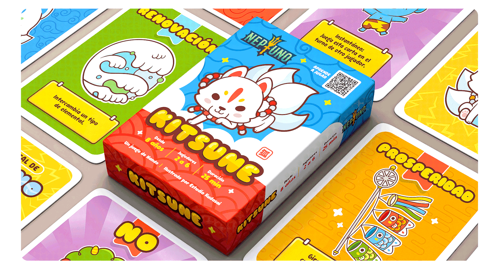 Ilustraciones creadas para Kitsune, un juego de cartas de Neptuno Games inspirado en el folclore japonés y protagonizado por los zorros Kitsune, los ogros Oni y las banderas Koinobori.